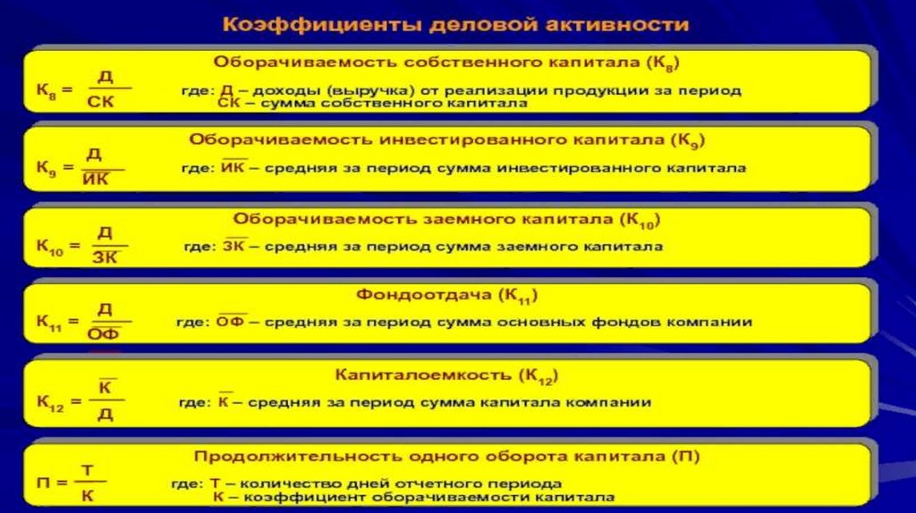 (структуры капитала); 5) коэффициенты рыночной активности.