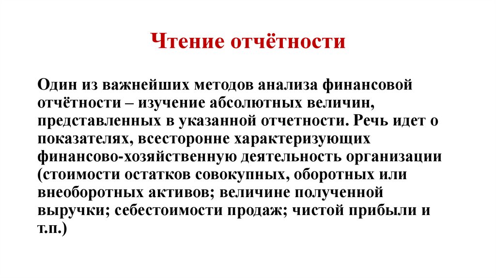 Чтение отчётностиОдин из важнейших методов анализа финансовой