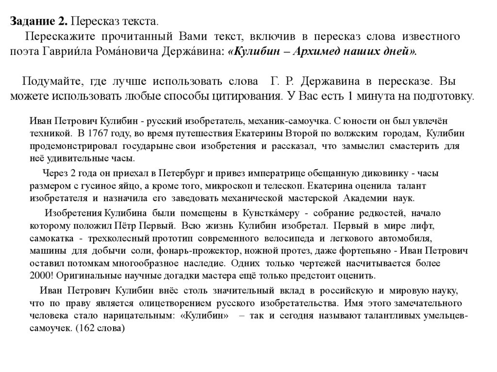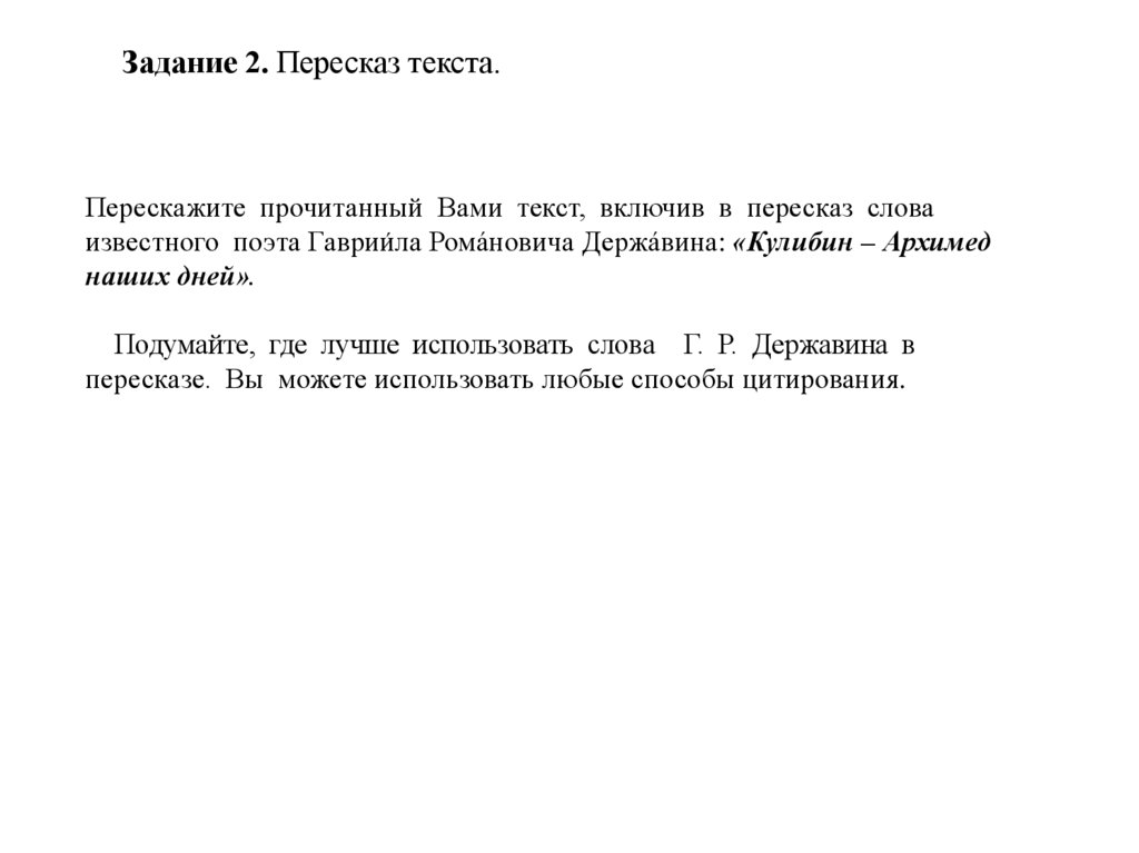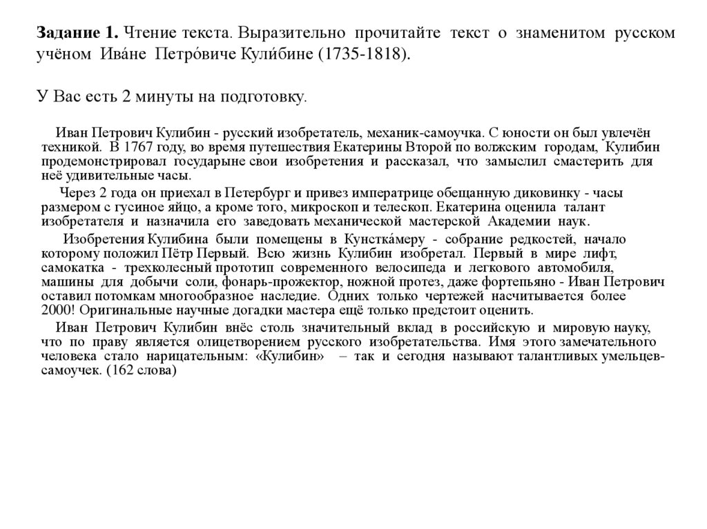 Задание 1. Чтение текста. Выразительно прочитайте текст о знаменитом русскомучёном Ива́не Петро́виче Кули́бине (1735-1818).