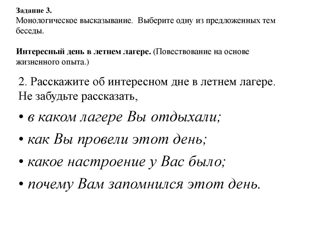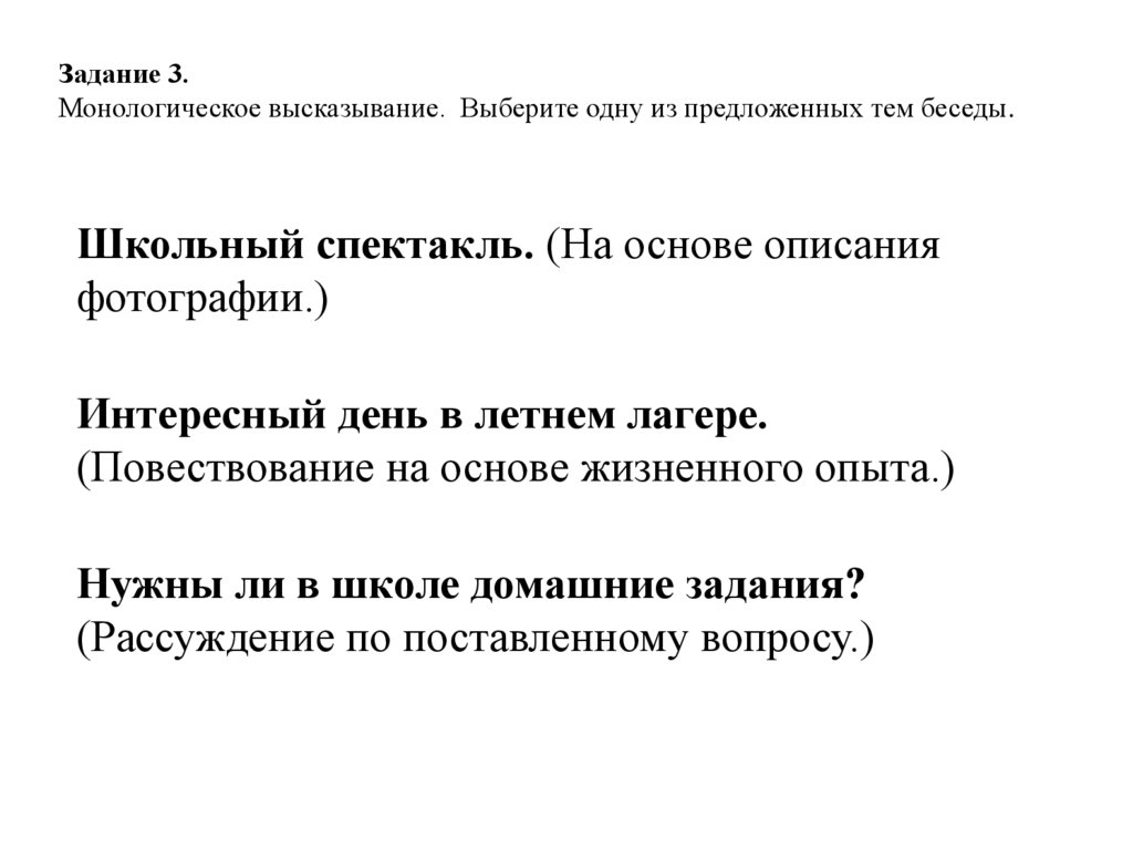 Задание 3.Монологическое высказывание. Выберите одну из предложенных тем беседы.