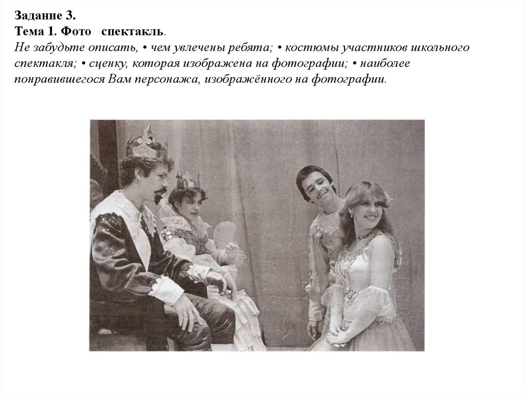 спектакля; • сценку, которая изображена на фотографии; • наиболее