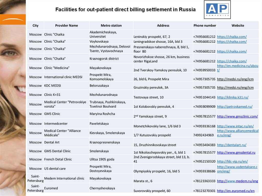 Facilities for out-patient direct billing settlement in RussiaCity