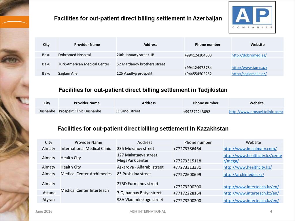 Facilities for out-patient direct billing settlement in AzerbaijanCity