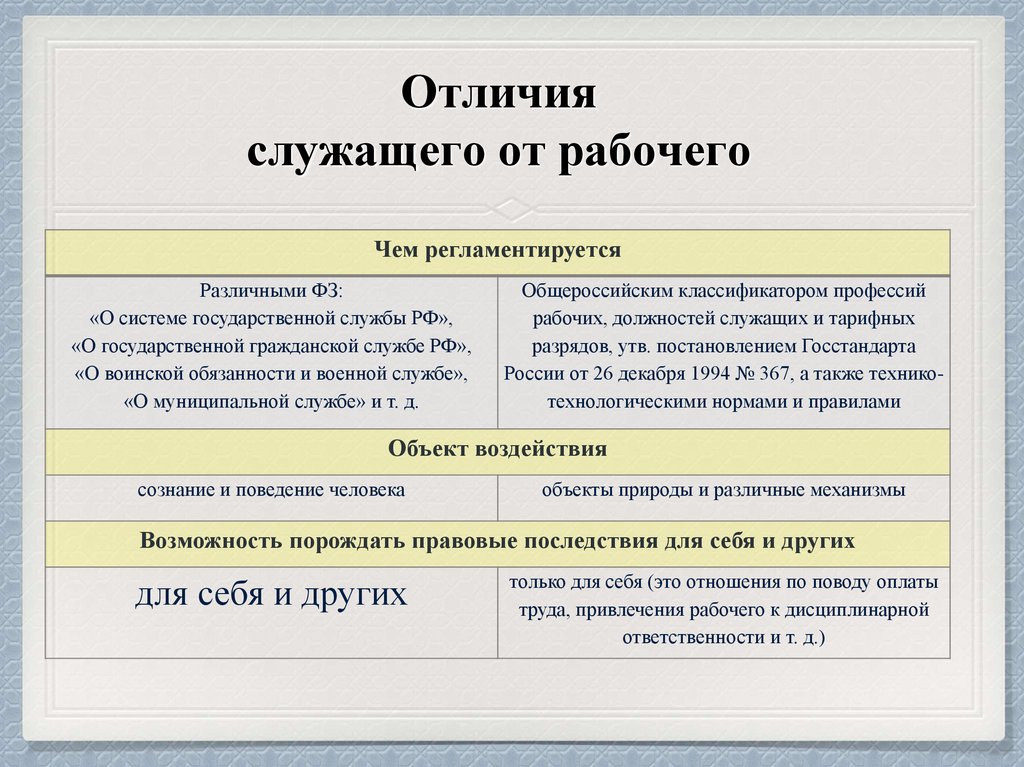Служба как специфический вид социальной деятельности. Характерные признаки служащего