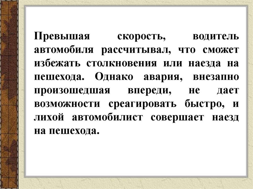пешехода. Однако авария, внезапно
