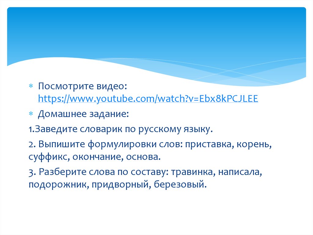 Посмотрите видео: https://www.youtube.com/watch?v=Ebx8kPCJLEEСостав слова