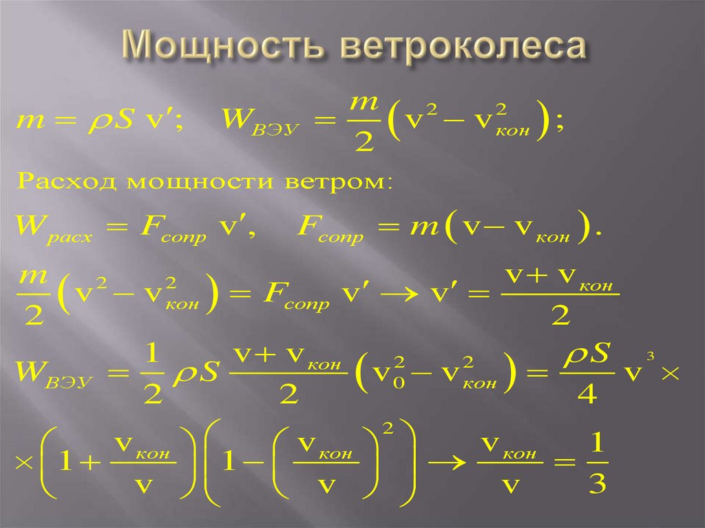 Расход мощности ветром: