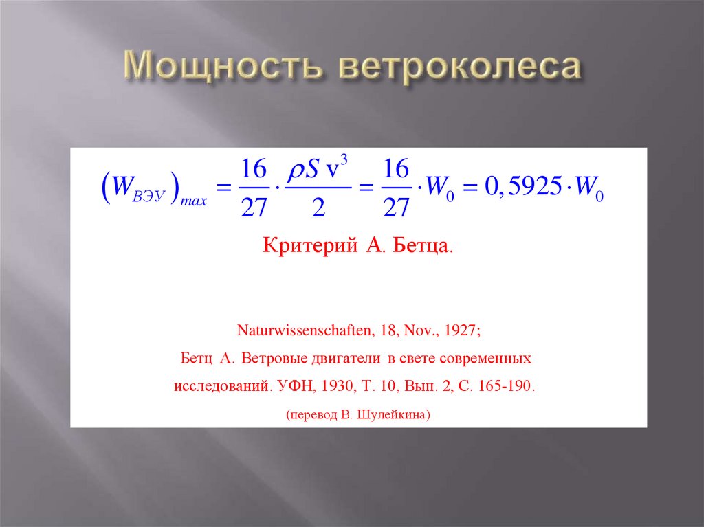 Бетц А. Ветровые двигатели в свете современных