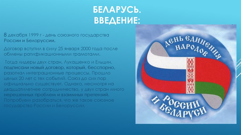 8 декабря 1999 г - день союзного государства
