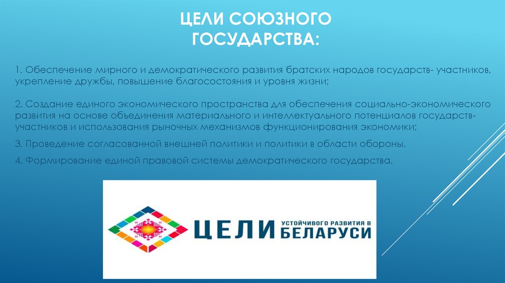 ЦЕЛИ СОЮЗНОГОГОСУДАРСТВА: