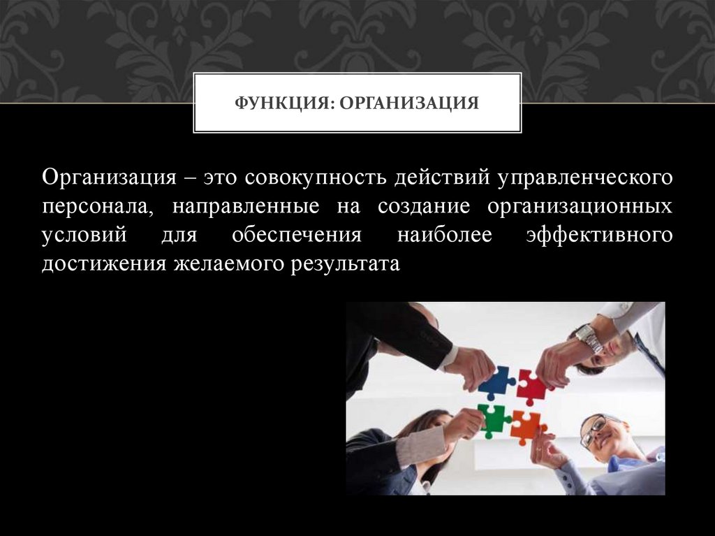 ФУНКЦИЯ: ОРГАНИЗАЦИЯОрганизация – это совокупность действий управленческого