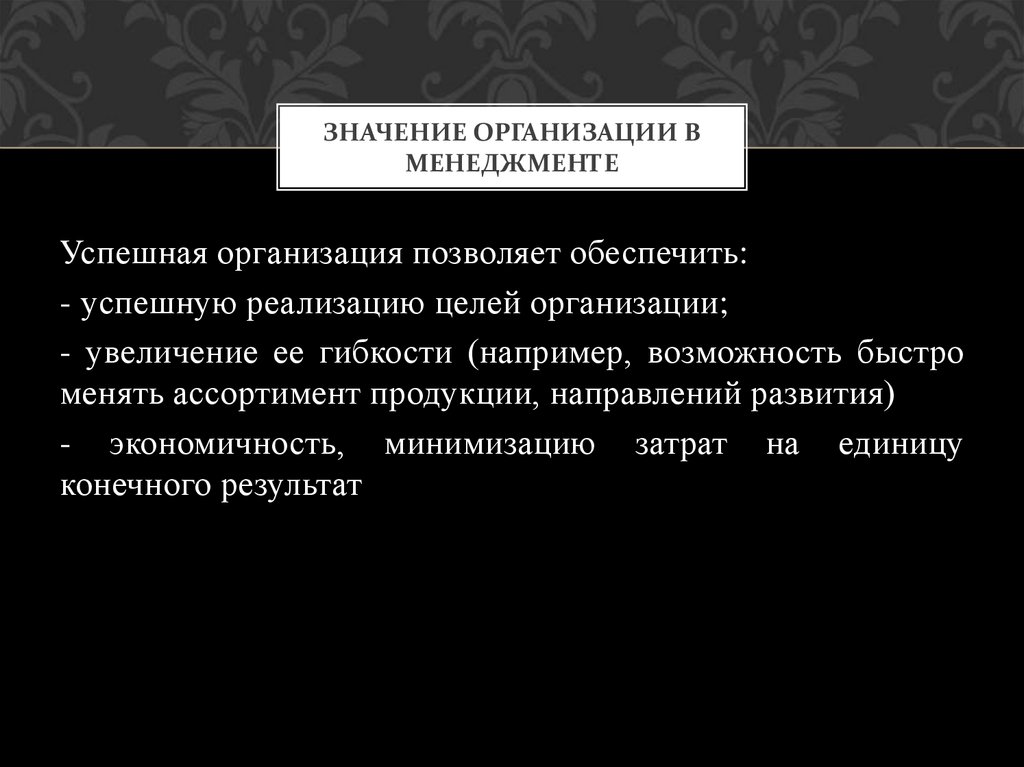 ЗНАЧЕНИЕ ОРГАНИЗАЦИИ ВМЕНЕДЖМЕНТЕ