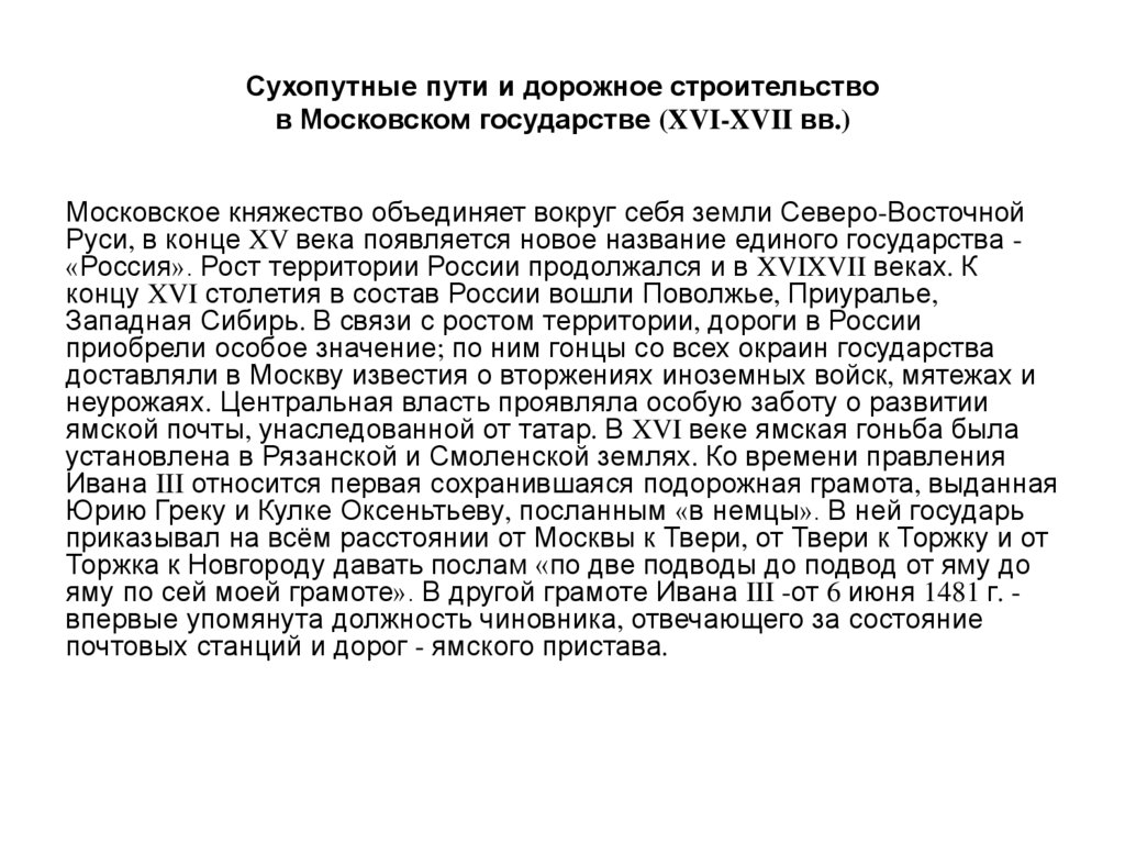 развития сухопутных путей и их техники не