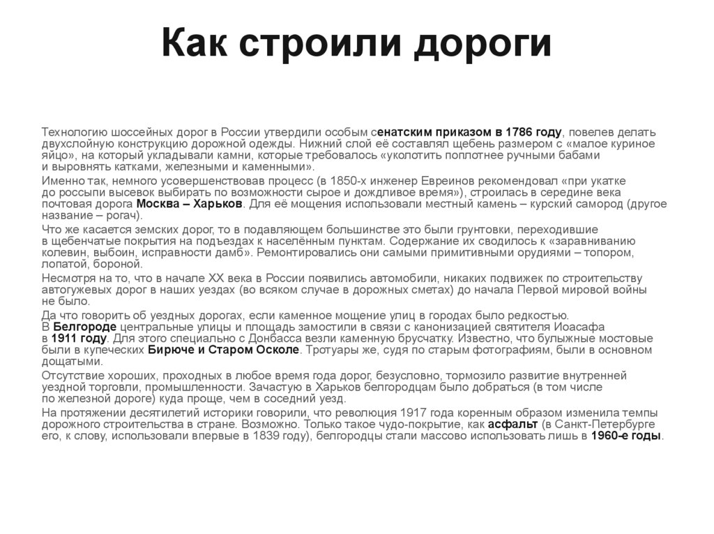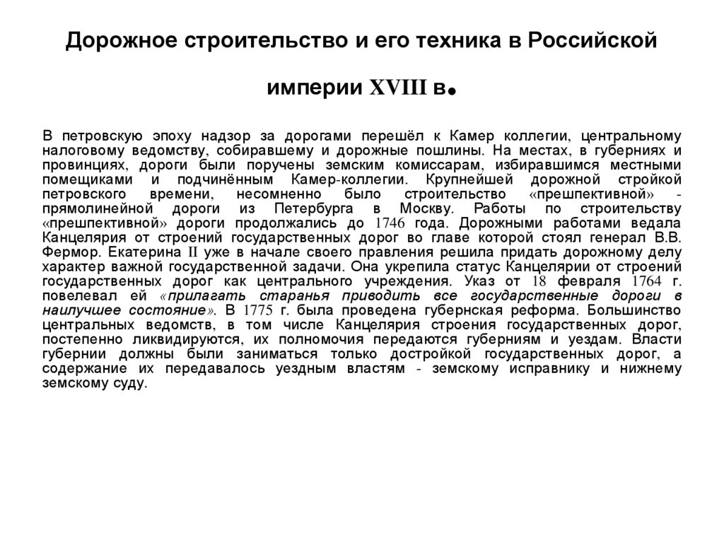 дороги предложил Б.Х. Миних, который, выполняя сенатское