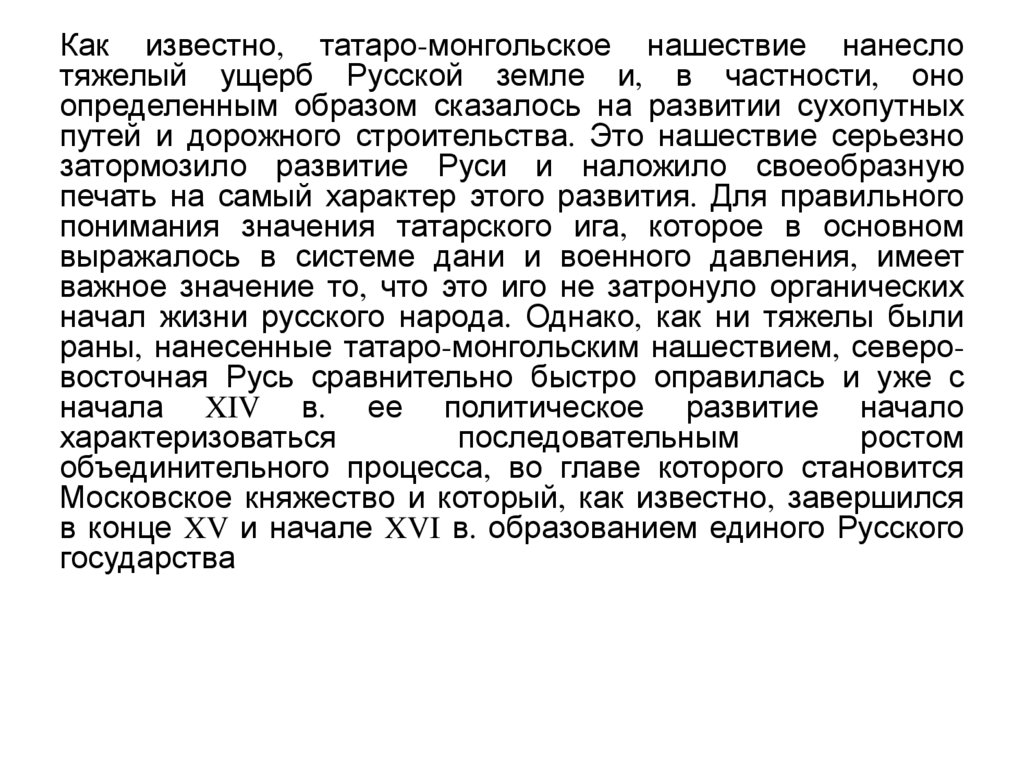 Как известно, татаро-монгольское нашествие нанеслотяжелый ущерб Русской земле и, в частности, оно
