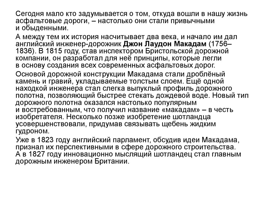 Уже в 1823 году английский парламент, обсудив идеи Макадама,