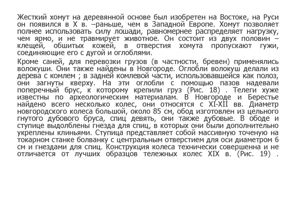 Жесткий хомут на деревянной основе был изобретен на Востоке, на Русион появился в X в. –раньше, чем в Западной Европе. Хомут позволяет