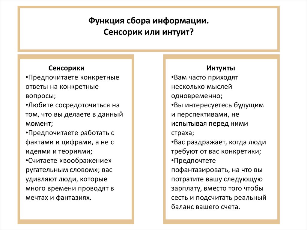 Функция сбора информации.Сенсорик или интуит?