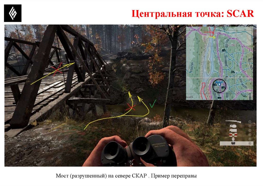 Центральная точка: SCARВарианты атаки в зависимости от защитников Скара по этой переправе