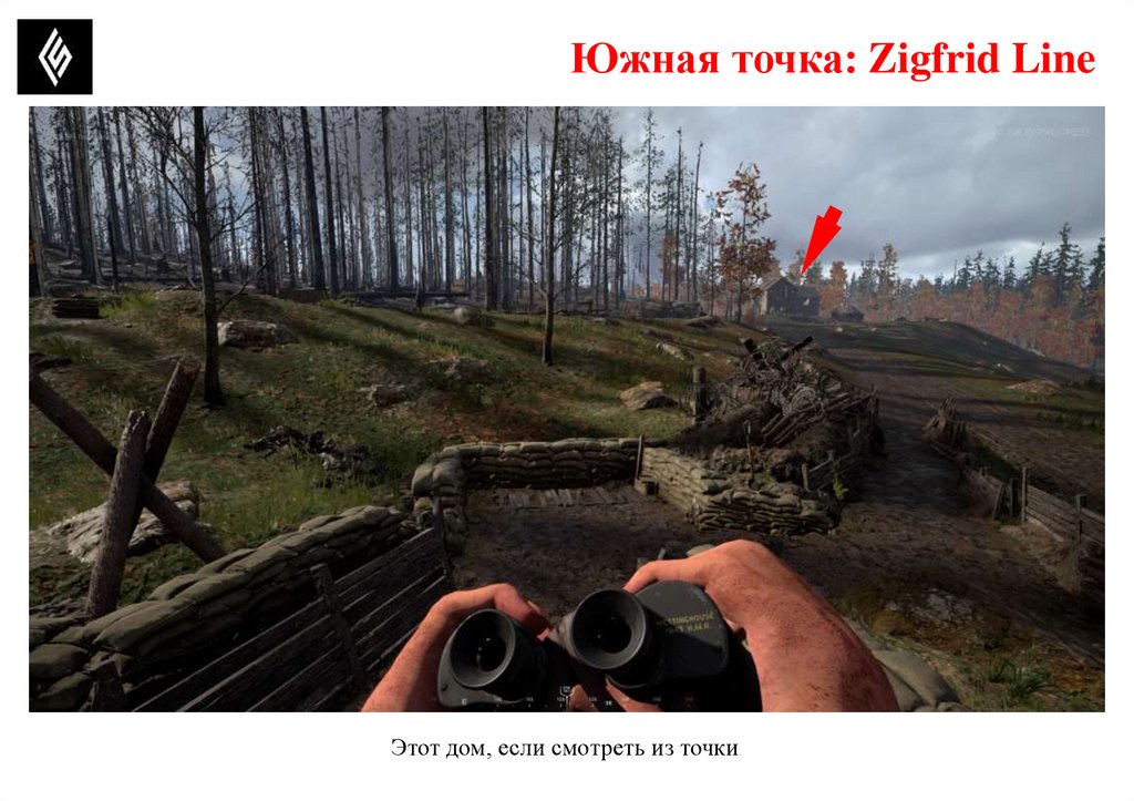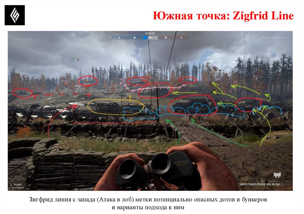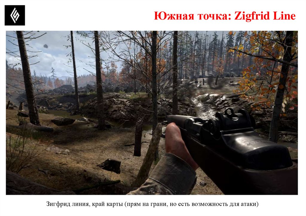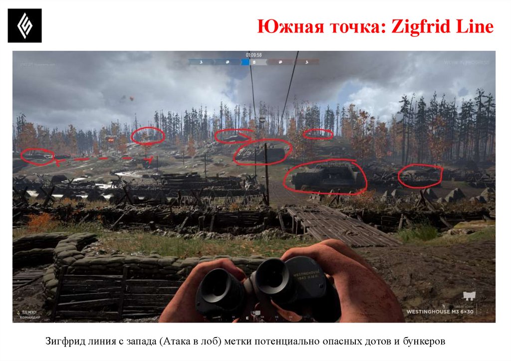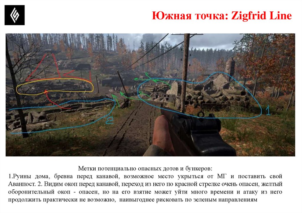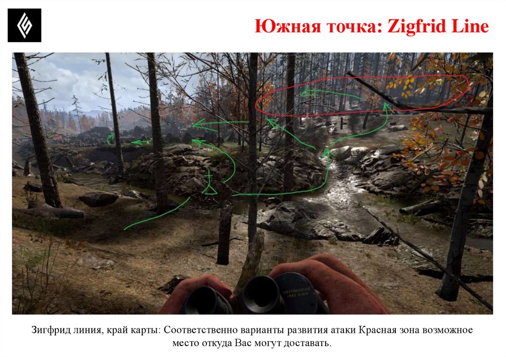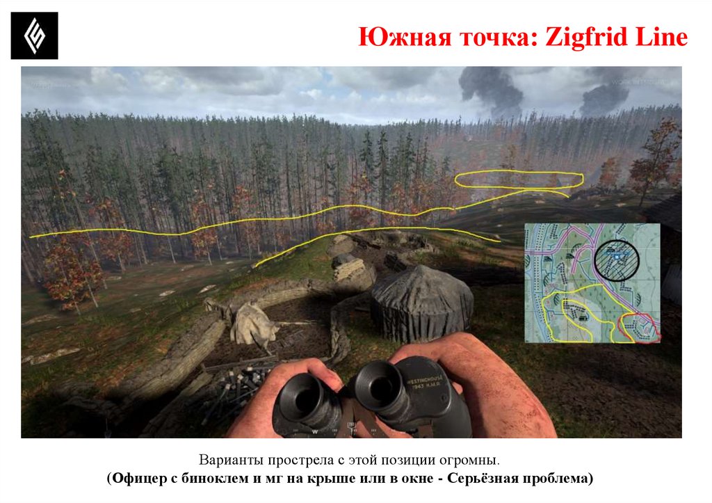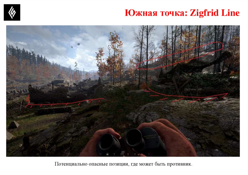 Южная точка: Zigfrid LineПотенциально опасные позиции, где может быть противник.