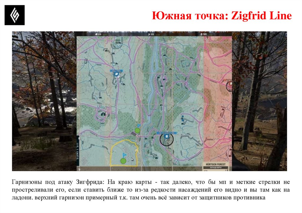 Южная точка: Zigfrid LineГарнизоны под атаку Зигфрида: На краю карты - так далеко, что бы мп и меткие стрелки не