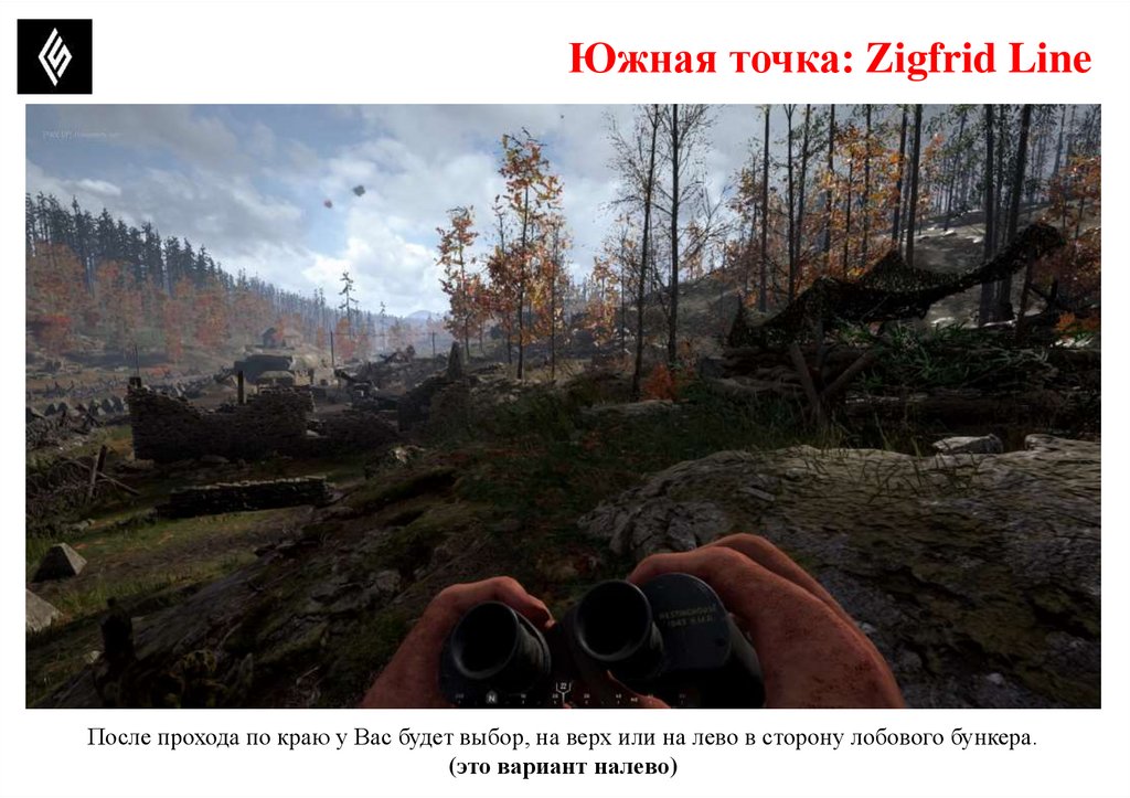 Южная точка: Zigfrid LineПосле прохода по краю у Вас будет выбор, на верх или на лево в сторону лобового бункера.