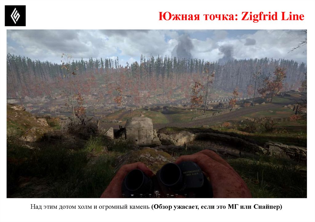 Южная точка: Zigfrid LineНад этим дотом холм и огромный камень (Обзор ужасает, если это МГ или Снайпер)