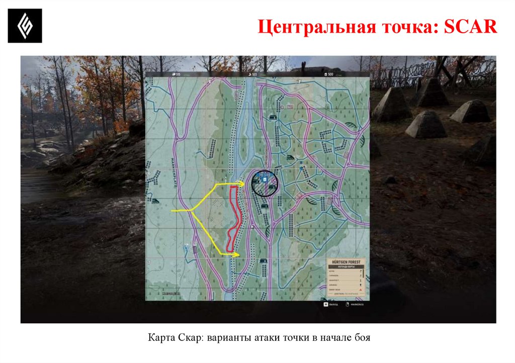 Центральная точка: SCARКарта Скар: варианты атаки точки в начале боя