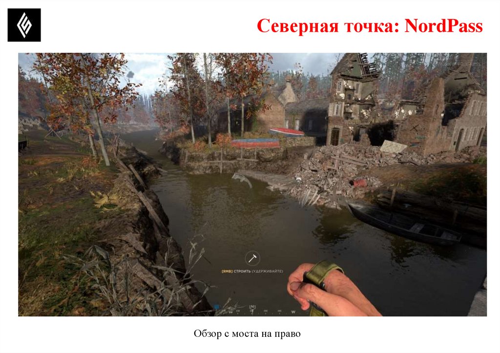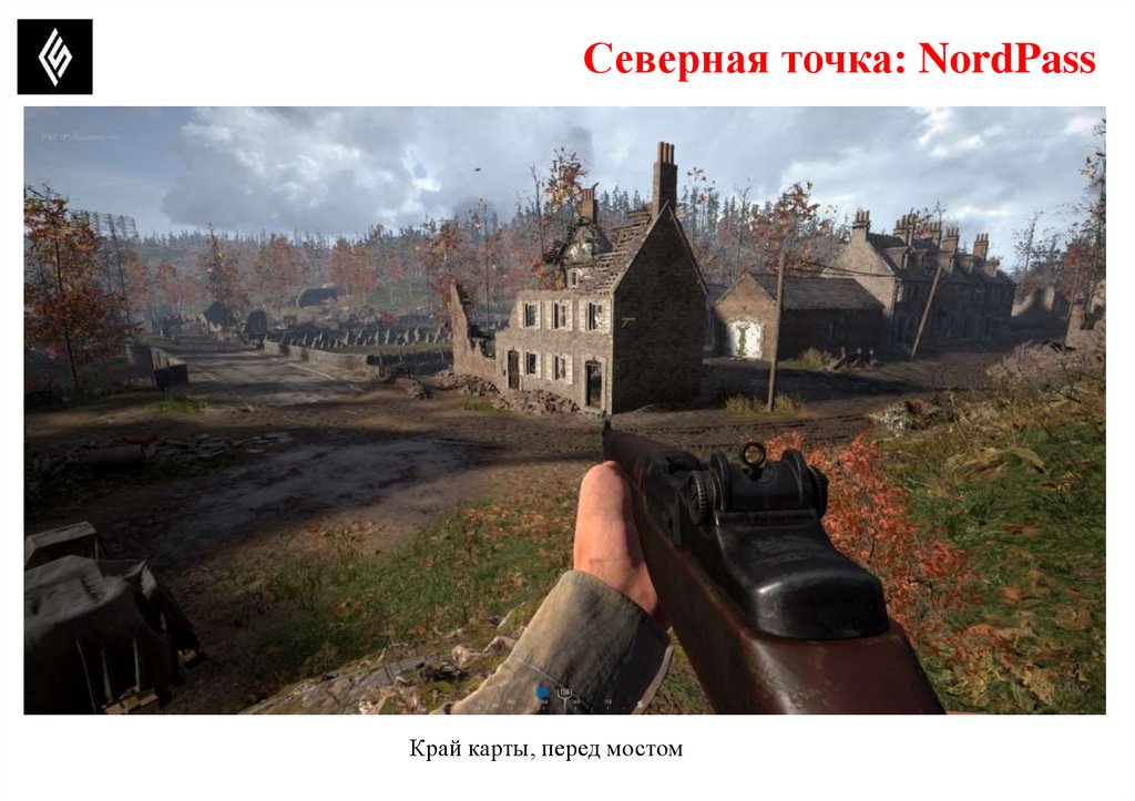 1.Руины дома, бревна перед канавой, возможное место укрыться от МГ и поставить свой