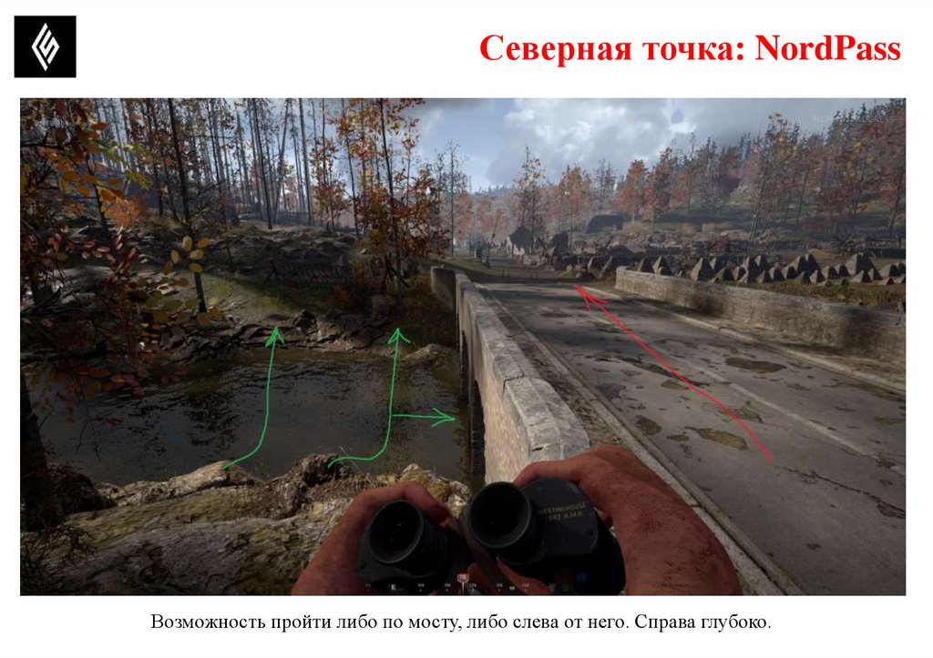 Северная точка: NordPassВозможность пройти либо по мосту, либо слева от него. Справа глубоко.