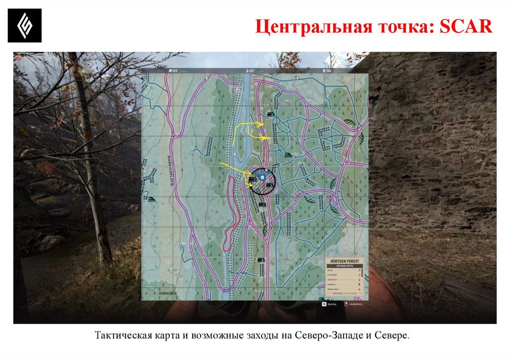 Центральная точка: SCARТактическая карта и возможные заходы на Северо-Западе и Севере.
