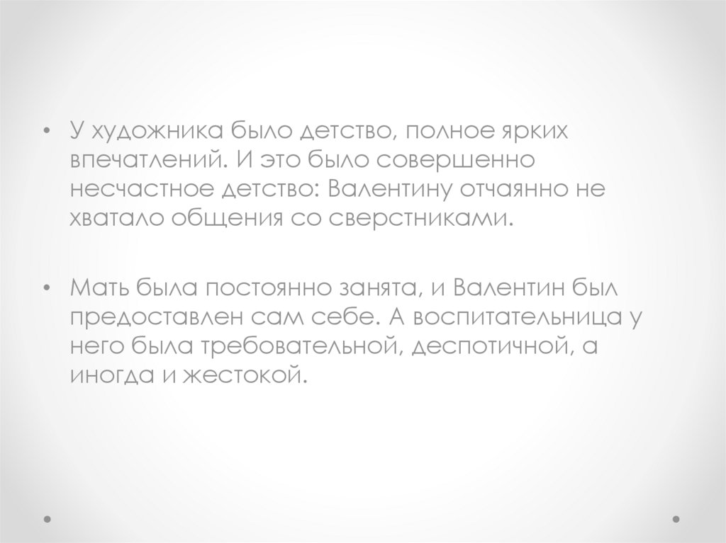 • У художника было детство, полное яркихвпечатлений. И это было совершенно