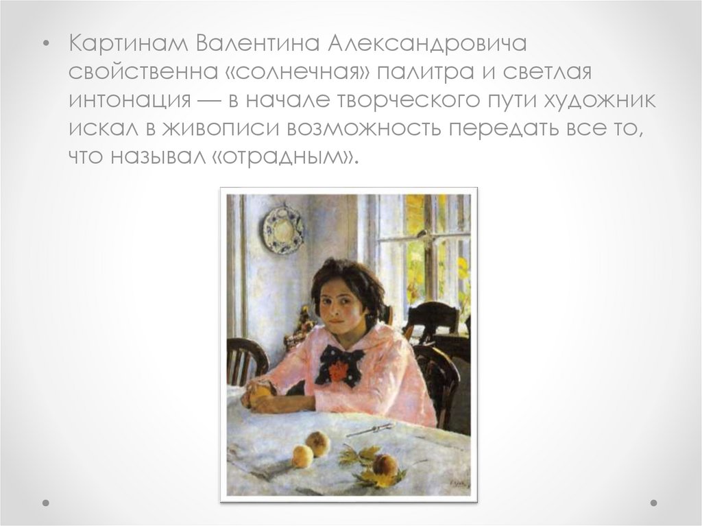 • Картинам Валентина Александровичасвойственна «солнечная» палитра и светлая