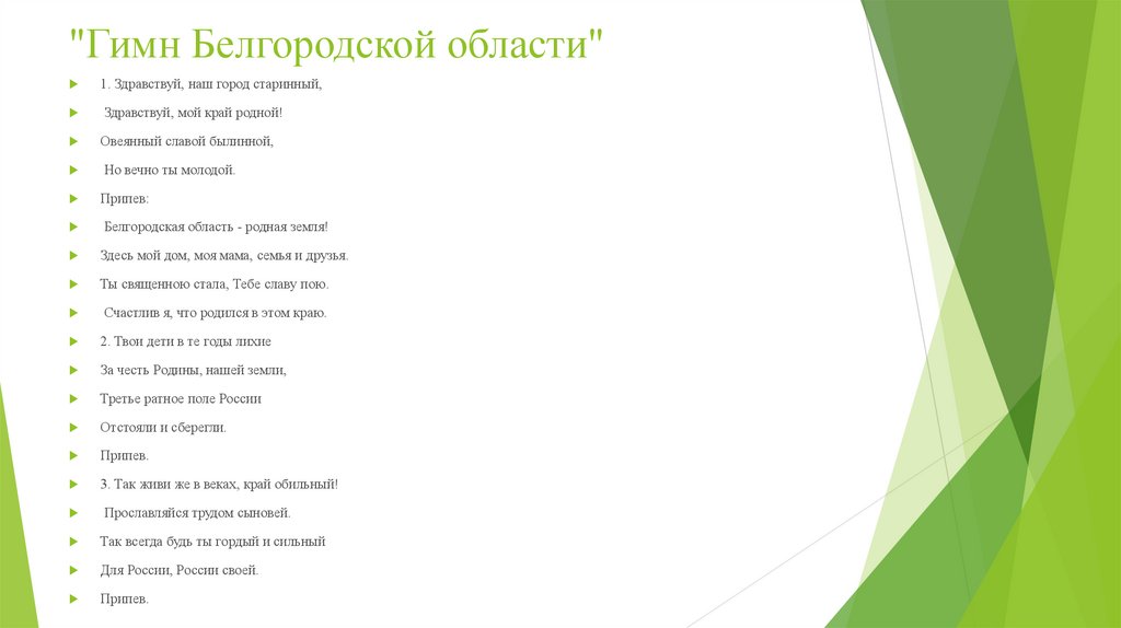"Гимн Белгородской области"1. Здравствуй, наш город старинный,