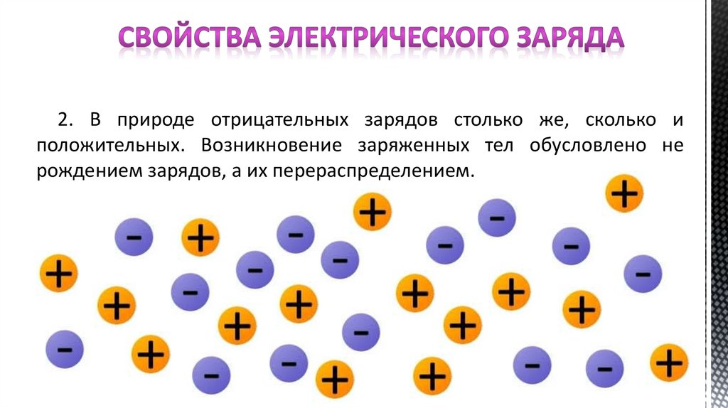 2. В природе отрицательных зарядов столько же, сколько иположительных. Возникновение заряженных тел обусловлено не