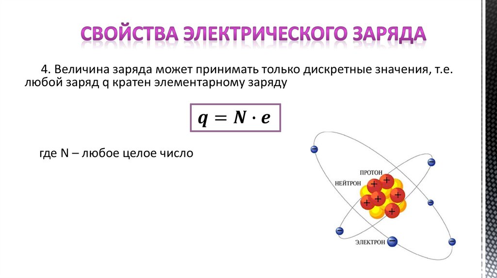 3. Существует минимальный, уже не делимый заряд. Такой зарядназывают элементарным.