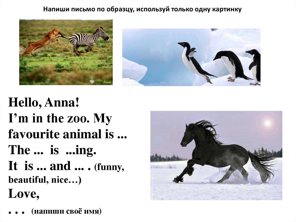 Напиши письмо по образцу, используй только одну картинкуHello, Anna!