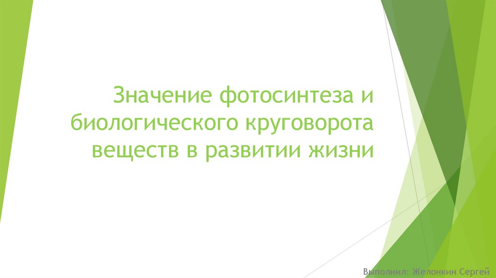 Значение фотосинтеза и биологического круговорота веществ в развитии жизни