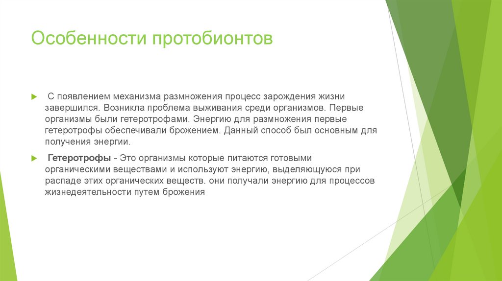 Особенности протобионтовС появлением механизма размножения процесс зарождения жизни