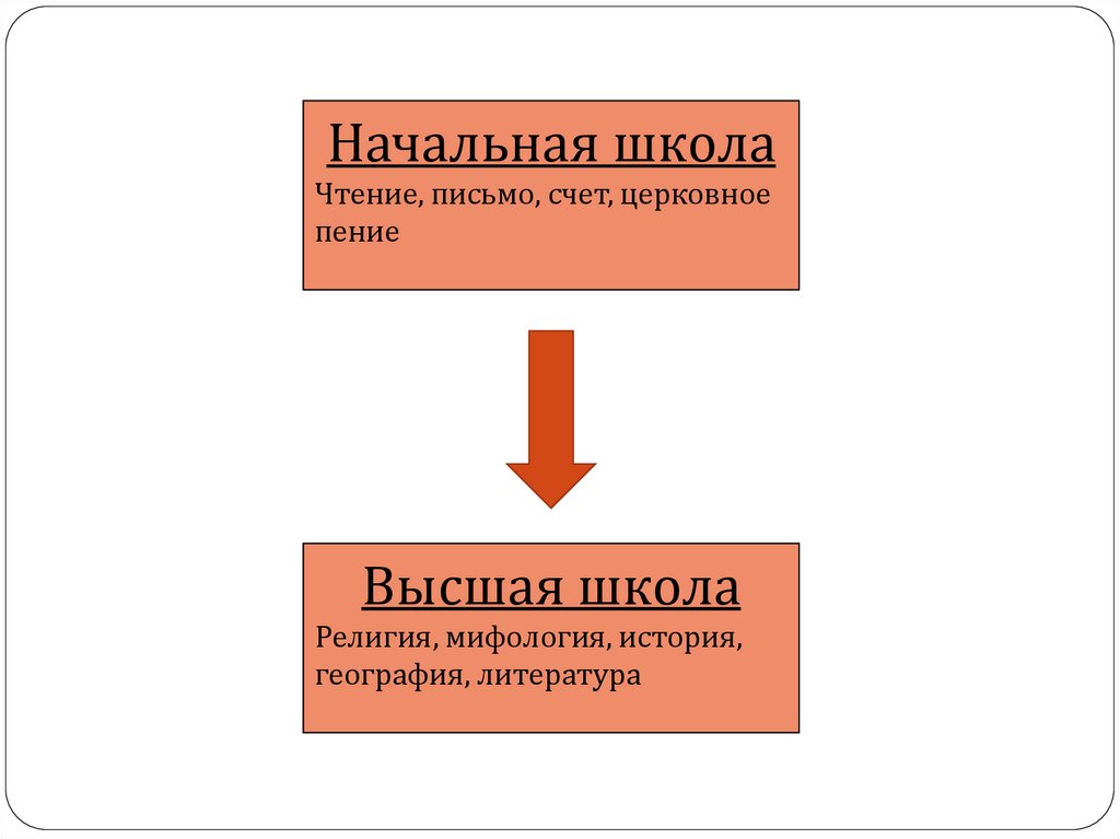 Начальная школаЧтение, письмо, счет, церковное
