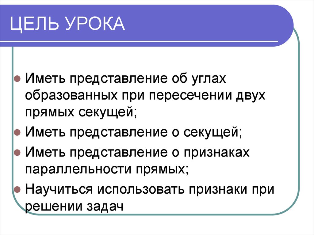 ЦЕЛЬ УРОКАИметь представление об углах