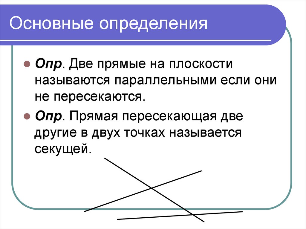 Основные определенияОпр. Две прямые на плоскости