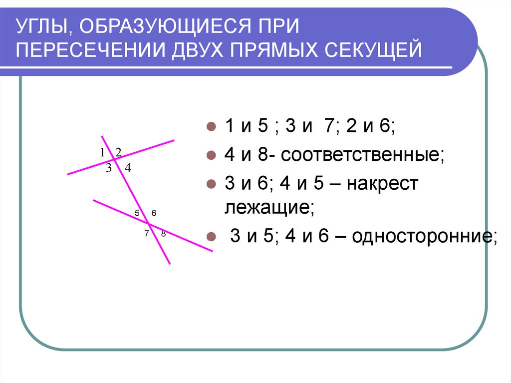 УГЛЫ, ОБРАЗУЮЩИЕСЯ ПРИПЕРЕСЕЧЕНИИ ДВУХ ПРЯМЫХ СЕКУЩЕЙ