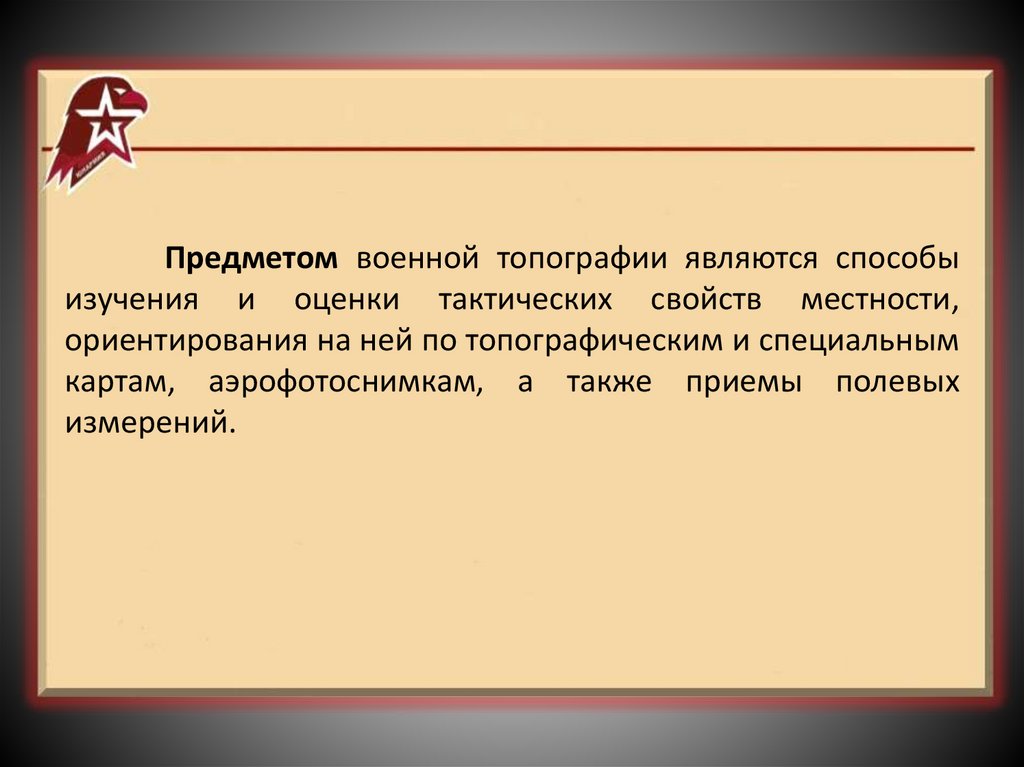 Предметом военной топографии являются способыизучения и оценки тактических свойств местности,