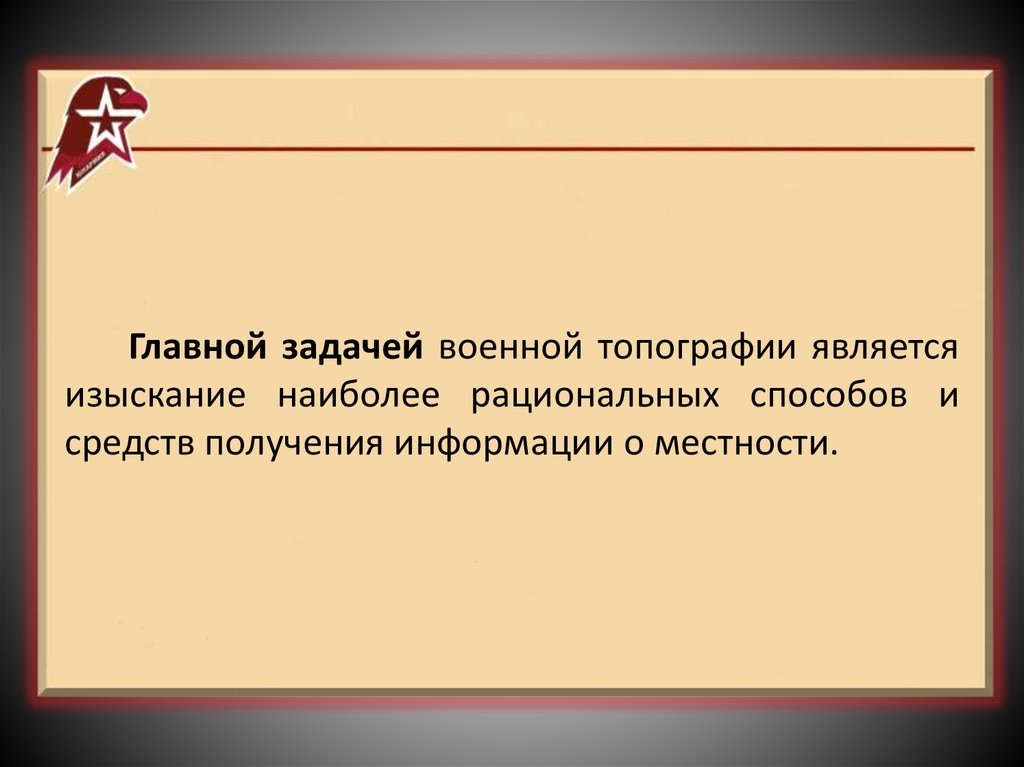Главной задачей военной топографии являетсяизыскание наиболее рациональных способов и