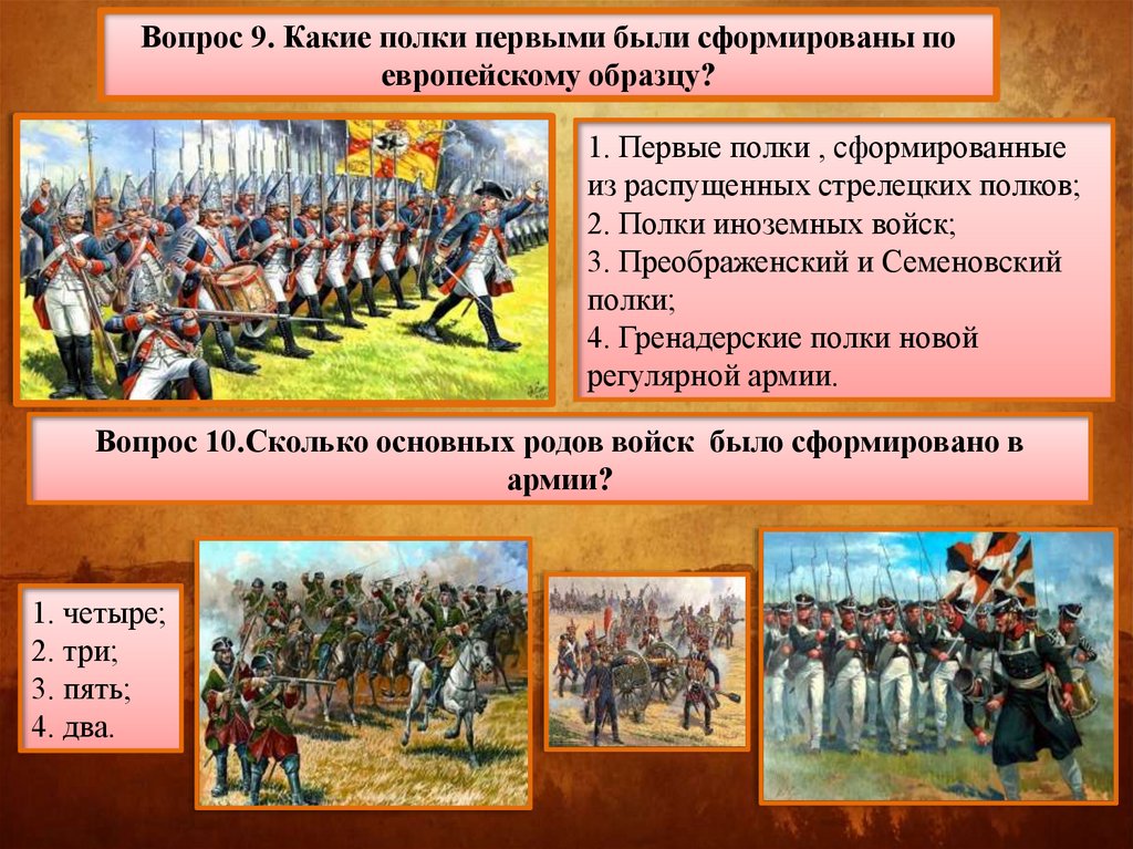 Вопрос 9. Какие полки первыми были сформированы поевропейскому образцу?
