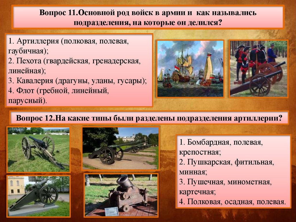 Вопрос 11.Основной род войск в армии и как называлисьподразделения, на которые он делился?