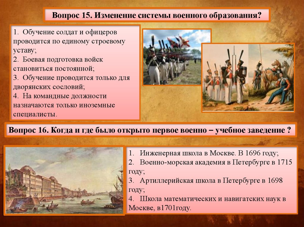 Вопрос 15. Изменение системы военного образования?1. Обучение солдат и офицеров