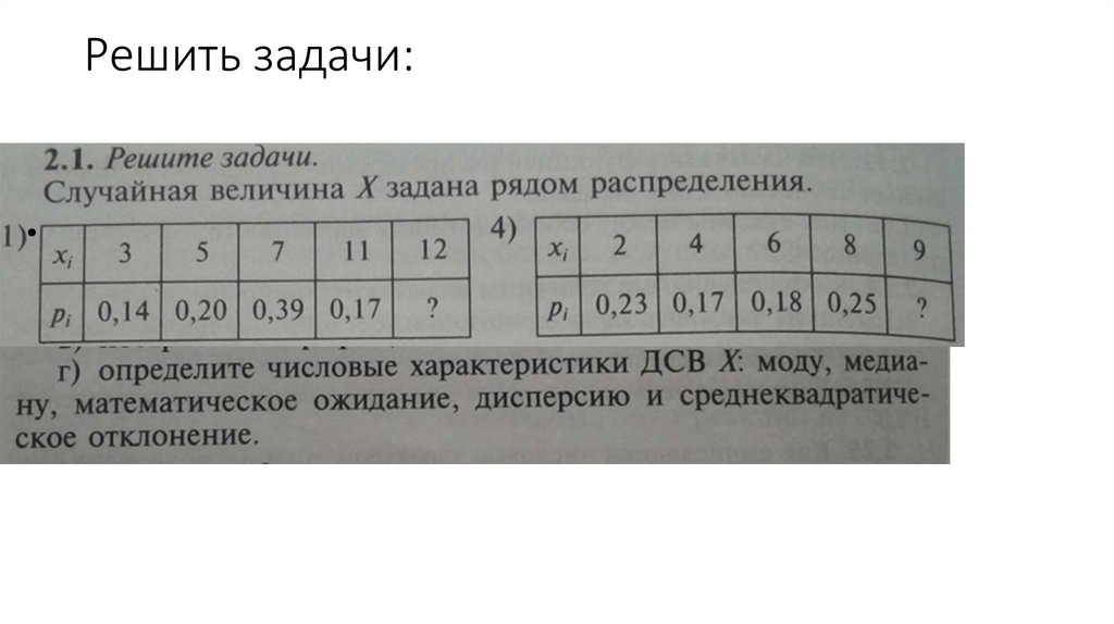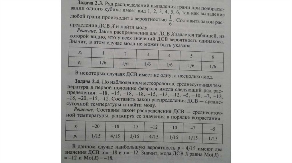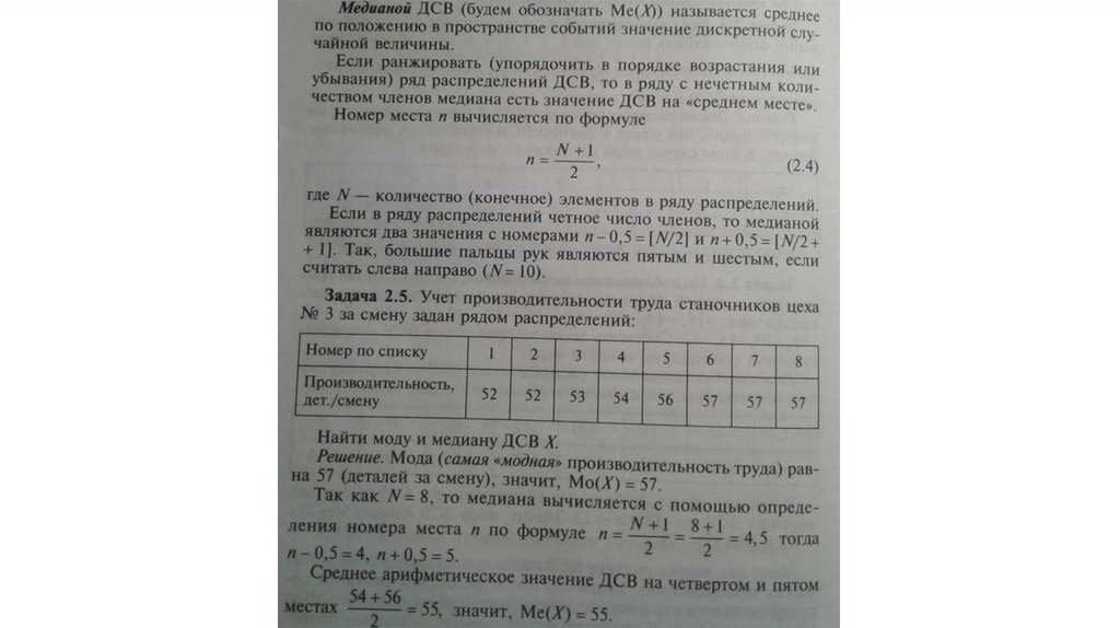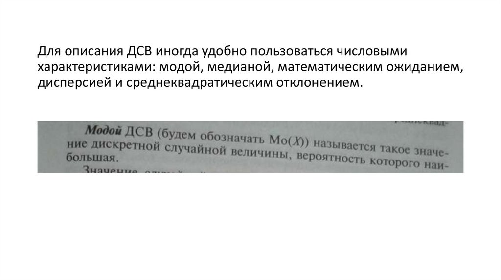 Для описания ДСВ иногда удобно пользоваться числовымихарактеристиками: модой, медианой, математическим ожиданием,