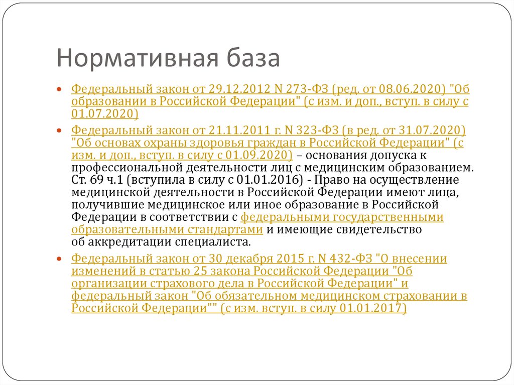 Нормативная базаФедеральный закон от 29.12.2012 N 273-ФЗ (ред. от 08.06.2020) "Об